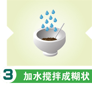 2.加入少量的飲用水,用醫用小壓片攪拌均勻,成糊狀;